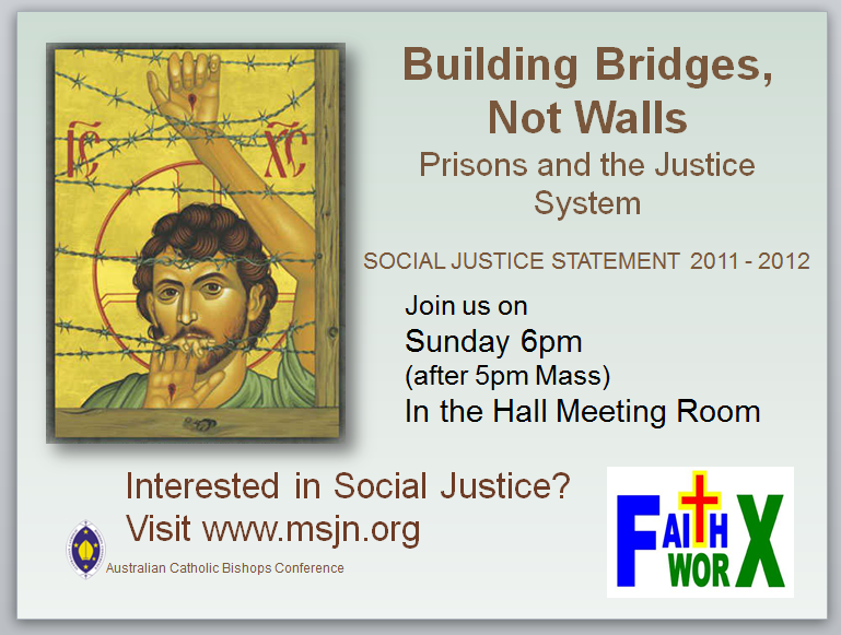 Join us at St Thomas More Parish Hall , 43 Acacia Avenue, Ruse this Saturday 13th August at 2:30pm Regular meeting this week and the chance to discuss with others current social justice issues. "Social Justice is an integral part of the Gospel. Within an Australian context social justice means ... examining our local situation to discover structures or influences that prevent people living as people of God". Archbishop John Bathersby |